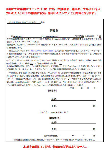 「アンチ・ドーピング規程(同意書)」を確認ください。 |